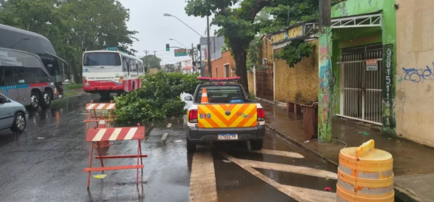 Zona Oeste: Interdição na avenida Elpídio Gomes (Vila Amélia) devido à queda de uma árvore e um ônibus quebrado.