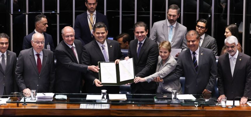 Ao assinar o decreto que ratifica o acordo comercial no Brasil, o presidente do Senado e do Congresso, Davi Alcolumbre (União-AP), apontou que o acordo envia um sinal claro em defesa da paz e da prosperidade no momento em que o mundo sofre com guerras e tensões comerciais.