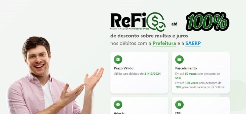 O Refis Ribeirão 2025, programa de recuperação fiscal da Prefeitura de Ribeirão Preto, já registrou 58.706 transações e renegociou mais de R$ 18 milhões em débitos, de acordo com balanço parcial divulgado nesta terça-feira (16). O prazo para adesão termina em 23 de dezembro.